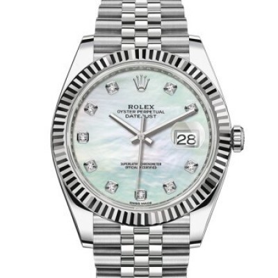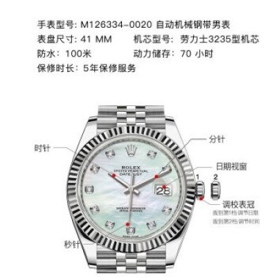 Swiss ROLEX watch Datejust 41 series automatic mechanical men's watch M126334-0020 white pearl with diamond five-lattice chain